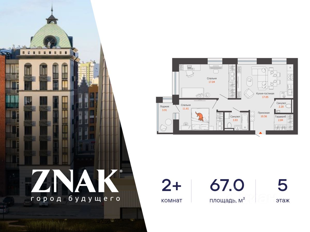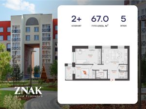 Продается 2-комнатная квартира в 3 км от Зубаревского леса, площадью 67.00 кв. м. Квартира находится в жилом комплексе комфорт-класса ZNAK от девелопера "Железно".