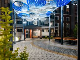 - Трехуровневое освещение и архитектурная подсветка преображает ночной облик всего комплекса.