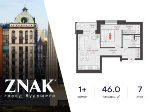 Продается 1-комнатная квартира в 3 км от Зубаревского леса, площадью 46.00 кв. м. Квартира находится в жилом комплексе комфорт-класса ZNAK от девелопера "Железно".