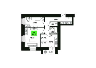 Продается 2-комнатная квартира на 5 этаже, площадью 51.19 квадратных метра. Сдача дома - 2 квартал 2027 года.