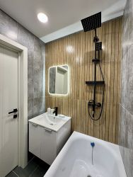 Будут выполнены работы: стяжка пола, замена электрики, замена труб водоснабжения и канализации, новые окна и двери, установлена новая сантехника. санузел в кафеле, пол - керамогранит. Ремонт делается по стильному дизайн-проекту.