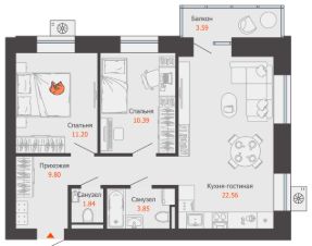 Продаётся 2-комнатная квартира в строящемся доме (Корпус 1), срок сдачи: IV-кв. 2027, общей площадью 61 кв.м., на 3 этаже. Новый жилой комплекс "Инноград" от застройщика "Железно" расположен по адресу: Россия, Киров, Песочная улица