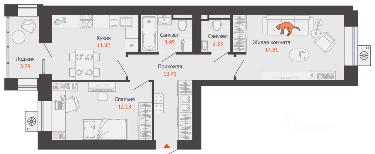 Продаётся 2-комнатная квартира в строящемся доме (Корпус 1), срок сдачи: IV-кв. 2027, общей площадью 57 кв.м., на 4 этаже. Новый жилой комплекс "Инноград" от застройщика "Железно" расположен по адресу: Россия, Киров, Песочная улица