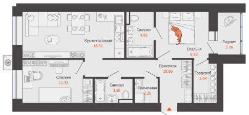 Продаётся 2-комнатная квартира в строящемся доме (Корпус 1), срок сдачи: IV-кв. 2027, общей площадью 68 кв.м., на 7 этаже. Новый жилой комплекс "Инноград" от застройщика "Железно" расположен по адресу: Россия, Киров, Песочная улица