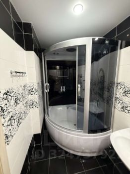 • Современный санузел — стильная плитка и просторная душевая кабина