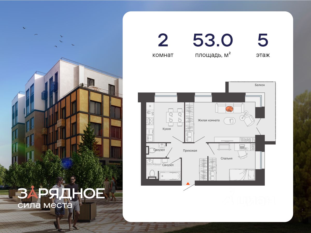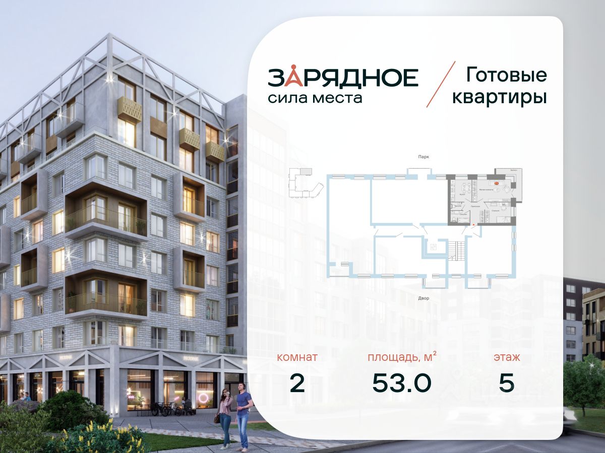 Продается 2-комнатная квартира, корпус 4/2, площадь 53.00 кв. с предчистовой отделкой. Квартира находится в жилом комплексе комфорт-класса "Зарядное" (ГК "Железно").