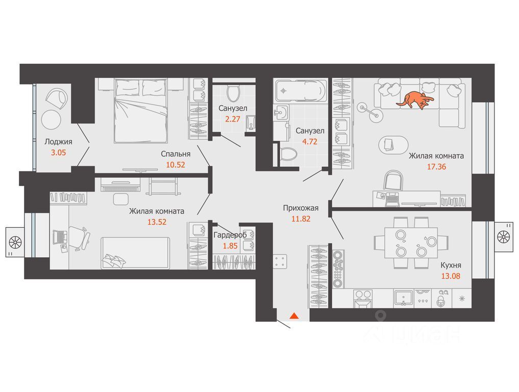 В уютном районе Кирова продается 3-комнатная квартира площадью 77.00 кв. м . Квартира расположена в новом жилом комплексе комфорт-класса "Инноград" от девелопера "Железно".