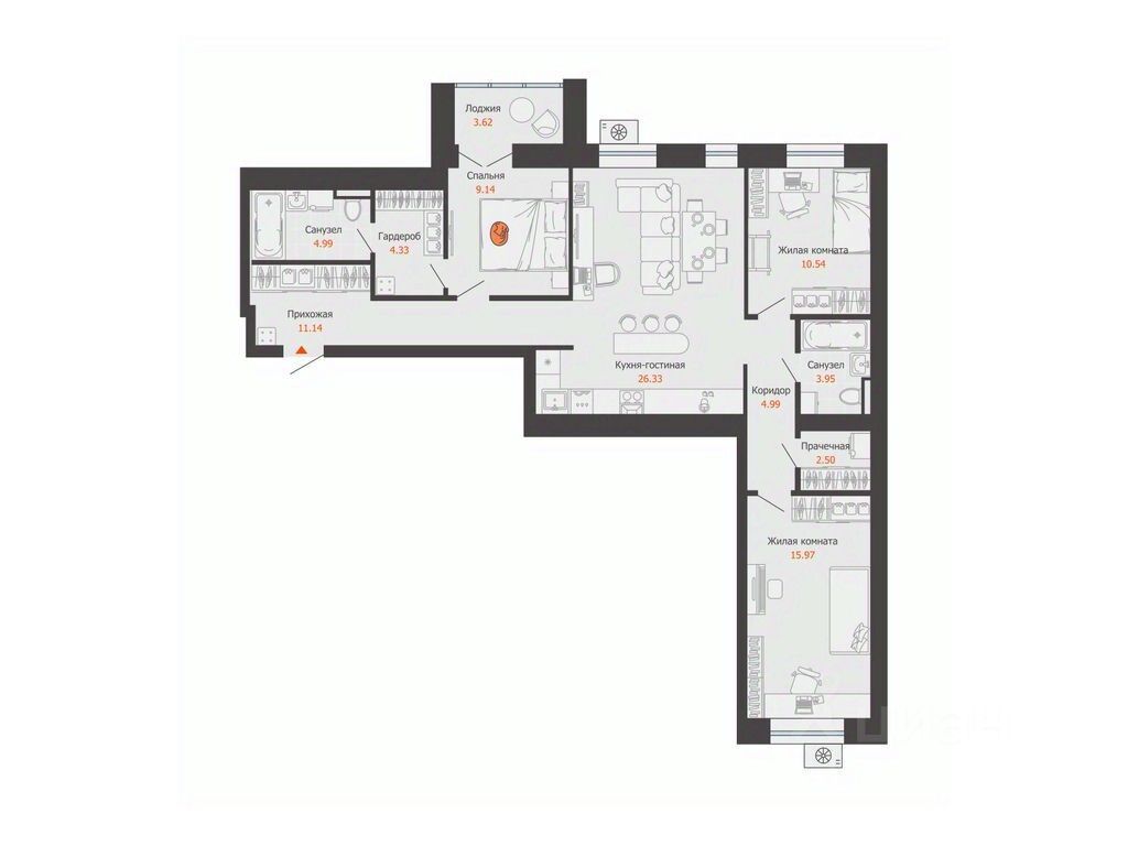 В уютном районе Кирова продается 3-комнатная квартира площадью 96.00 кв. м . Квартира расположена в новом жилом комплексе комфорт-класса "Инноград" от девелопера "Железно".