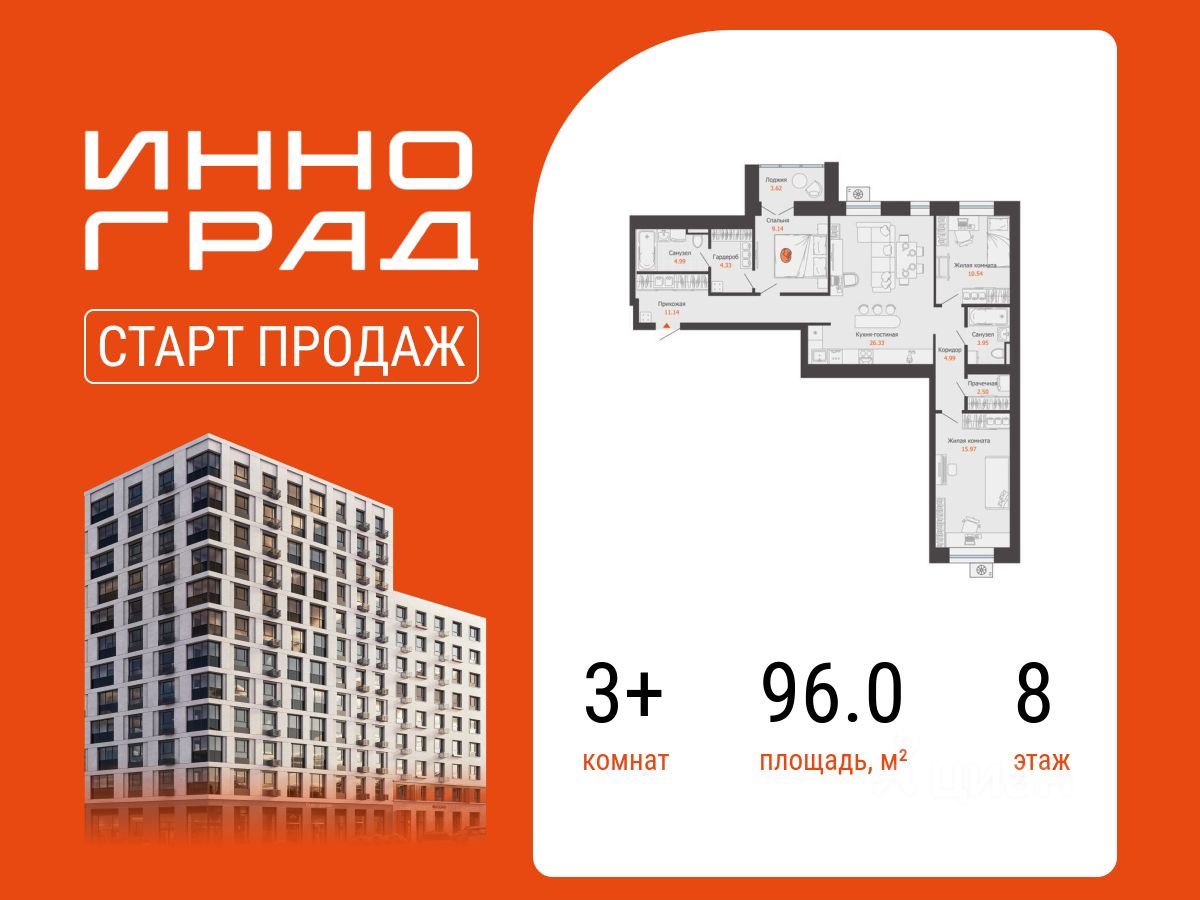 В уютном районе Кирова продается 3-комнатная квартира площадью 96.00 кв. м . Квартира расположена в новом жилом комплексе комфорт-класса "Инноград" от девелопера "Железно".