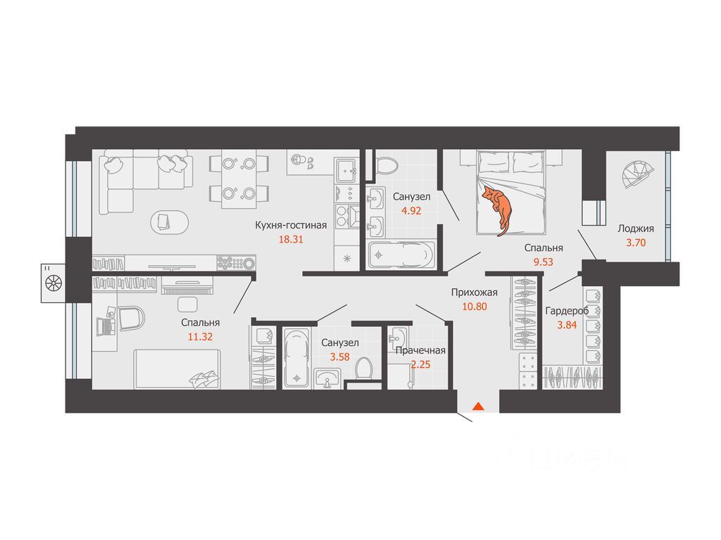 В уютном районе Кирова продается 2-комнатная квартира площадью 66.00 кв. м . Квартира расположена в новом жилом комплексе комфорт-класса "Инноград" от девелопера "Железно".