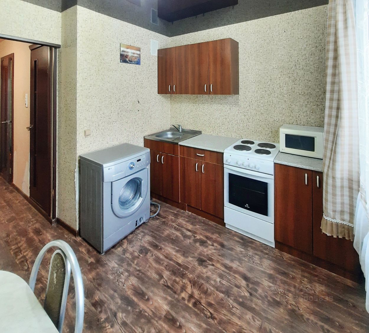 - В подарок вам остается кухонный гарнитур, холодильник, стиральная машина, стол, прихожая, вместительный шкаф-купе.