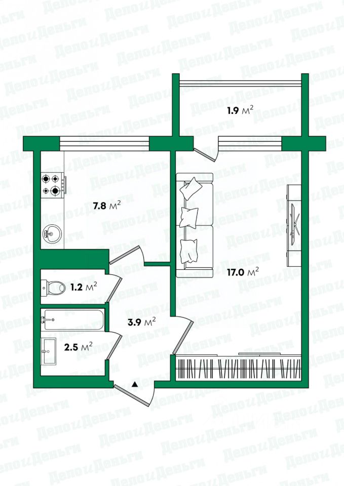 ПЛАНИРОВКА КВАРТИРЫ 33,4 кв. м ПРЕДУСМАТРИВАЕТ: