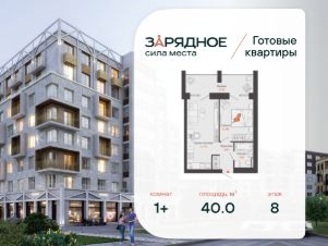Продается 1-комнатная квартира, корпус 4/1, площадь 40.00 кв. Квартира находится в жилом комплексе комфорт-класса "Зарядное" (ГК "Железно").