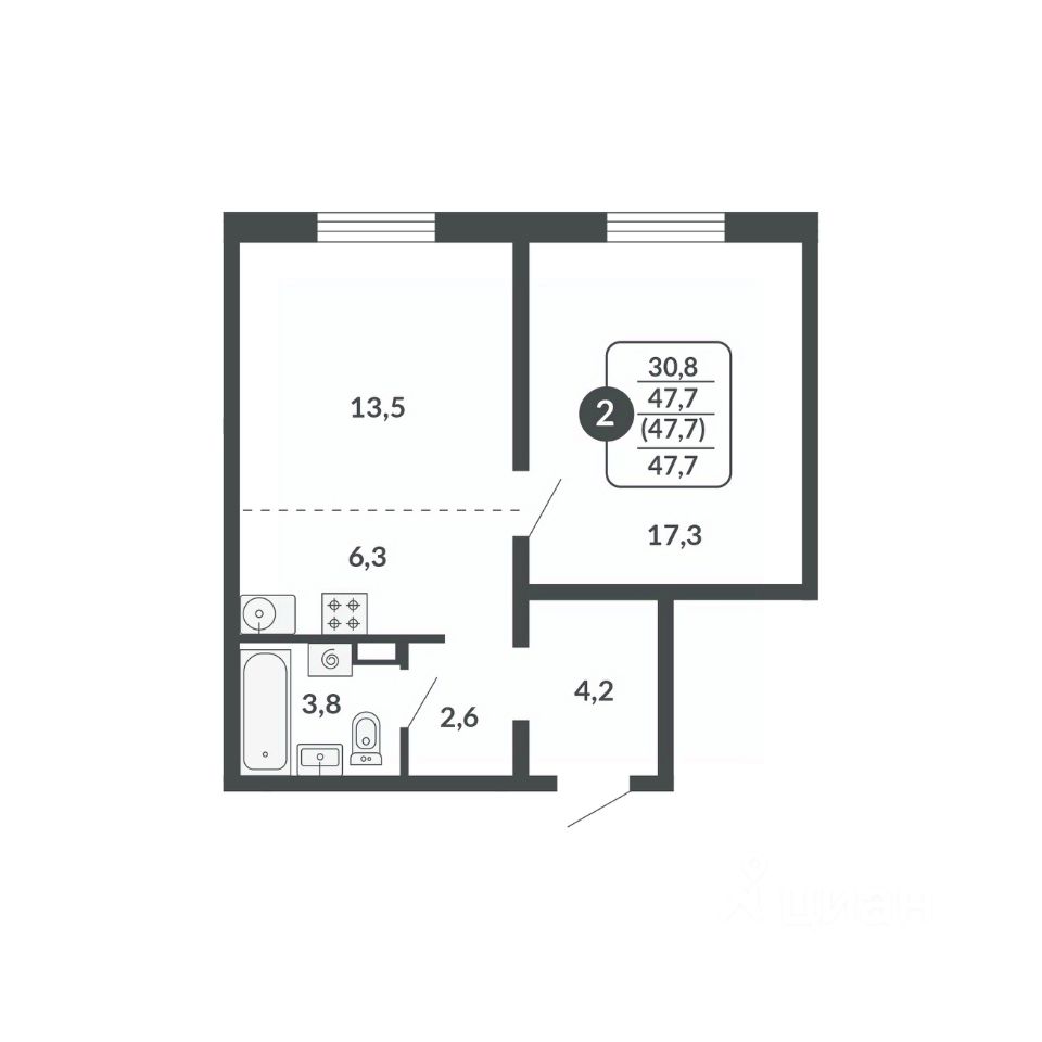 Общая площадь47,7 м²