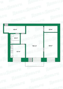 - жилые комнаты площадью 18,7 и 9,9 кв.м