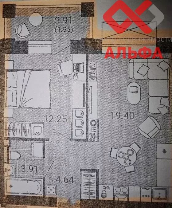 Просторные площади: Площадь кухни-гостиной- 19,4 кв., площадь комнаты-12,3 кв.м.