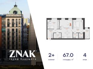 Продается 2-комнатная квартира в 3 км от Зубаревского леса, площадью 67.00 кв. м. Квартира находится в жилом комплексе комфорт-класса ZNAK от девелопера "Железно".