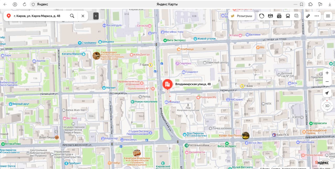 Жилое помещение "квартира" площадью 68,3 кв.м., этаж 4, кадастровый номер 43:40:000275:633, расположенное по адресу: Кировская область, г. Киров, ул. Карла Маркса, д. 48, кв. 16. Организатор торгов не располагает сведениями о зарегистрированных лицах, сохраняющих в соответствии с законом право пользования жилым помещением после его приобретения покупателем, в том числе о лицах, не участвовавших в приватизации жилого помещения, а также сведениями о задолженности по взносам за капитальный ремонт (судебным приставом-исполнителем не предоставлены). Вид права собственность. Обременение аресты, запрет, наложенный Ленинским РОСП ГУФССП России по Московской области. Собственник Курагина О.В. (уведомление 3044 от 11.11.2025).