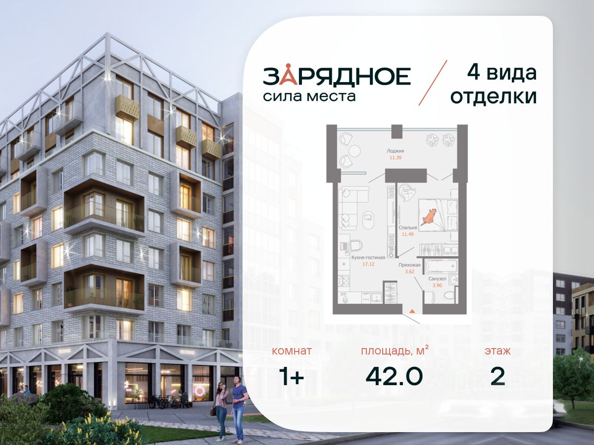 Продается 1-комнатная квартира, корпус 4/1, площадь 42.00 кв. Квартира находится в жилом комплексе комфорт-класса "Зарядное" (ГК "Железно").
