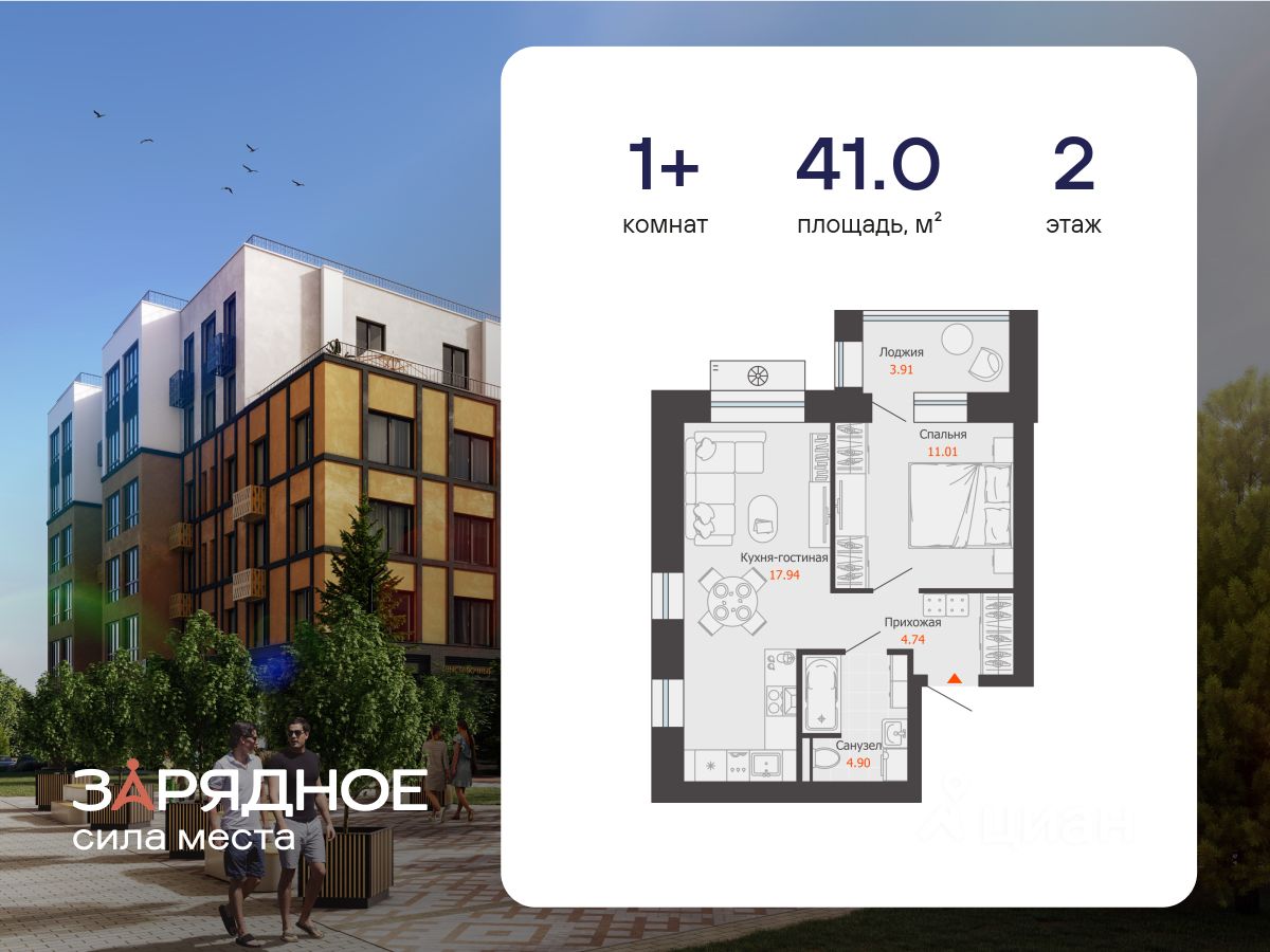 Продается 1-комнатная квартира, корпус 4/1, площадь 41.00 кв. Квартира находится в жилом комплексе комфорт-класса "Зарядное" (ГК "Железно").