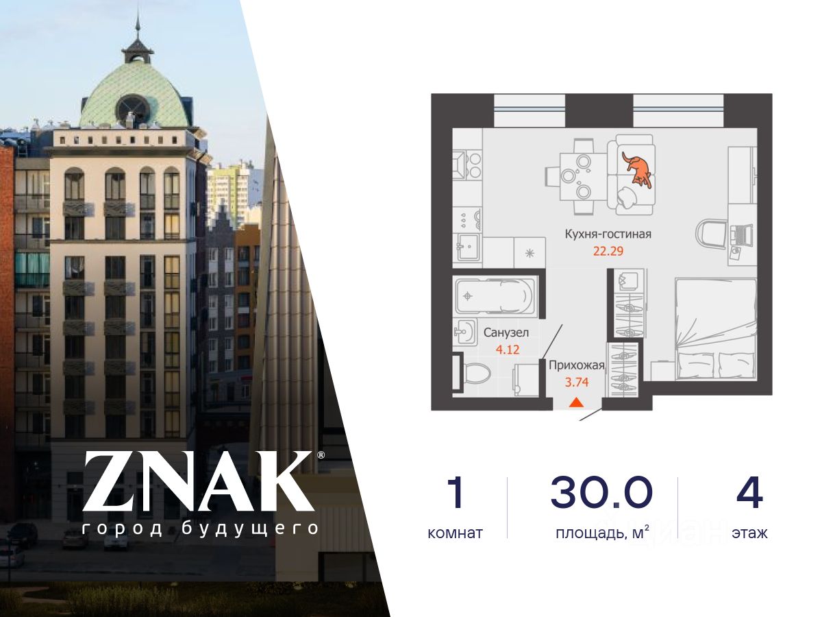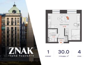Продается студия в 3 км от Зубаревского леса, площадью 30.00 кв. м. Квартира находится в жилом комплексе комфорт-класса ZNAK от девелопера "Железно".