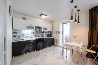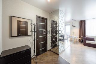 Квартира просторная, есть вместительная гардеробная 4м, удобный санузел 5м, лоджия полукруг 4м.