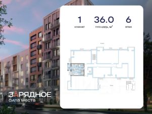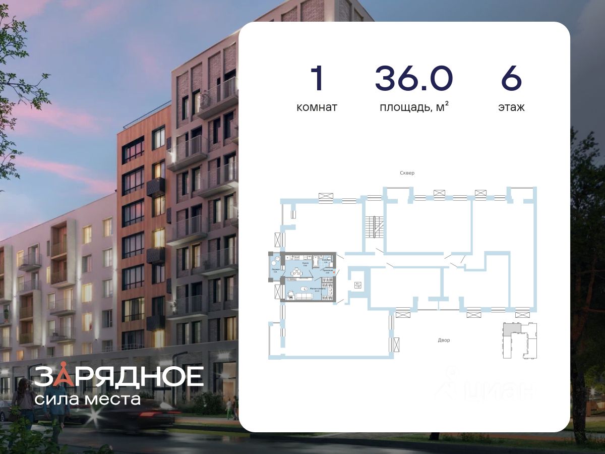 Продается 1-комнатная квартира, корпус 3, площадь 36.00 кв. Квартира находится в жилом комплексе комфорт-класса "Зарядное" (ГК "Железно").