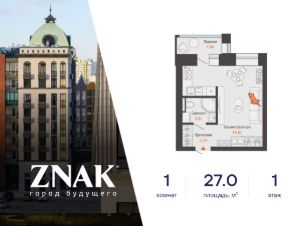 Продается студия в 3 км от Зубаревского леса, площадью 27.00 кв. м. Квартира находится в жилом комплексе комфорт-класса ЗНАК от девелопера "Железно".
