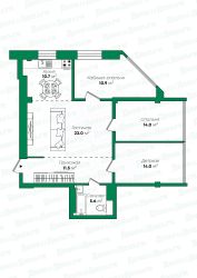 гоcтиная - 22,0 м2; зoнa куxни- 10,7 м2; детская комнатa-14,0 м2; спaльня-14,0 м2; кабинет /спальня -10,9м2; зoна приxoжeй - 11,5 м2; вaнная комната - 5,6 м2;