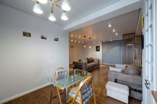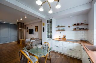 * В зоне кухни находится встроенный гарнитур, оснащенный техникой: индукционная варочная панель, холодильник, духовой шкаф, микроволновка, посудомоечная машина, смеситель с фильтром для очистки воды.