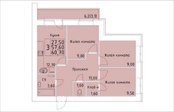 60,7 м²