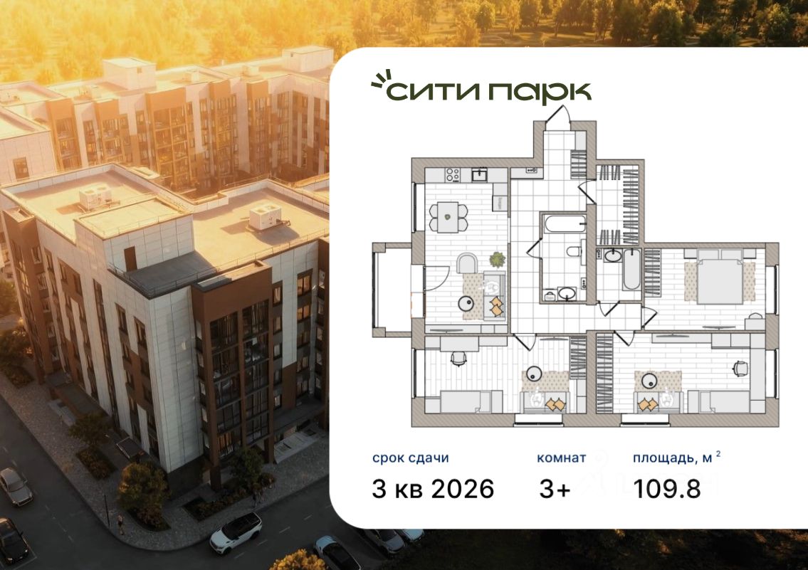 4-комнатная, 109.8 м², 116 по адресу Парковая, 1б Тип дома: Кирпич. Жилой комплекс "Сити Парк"Преимущества покупки квартиры в новостройке напрямую от застройщика КСМ: