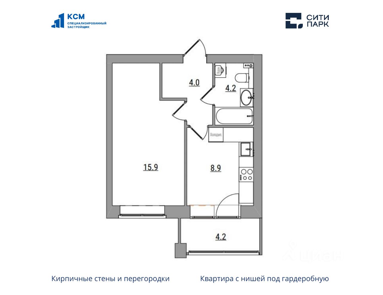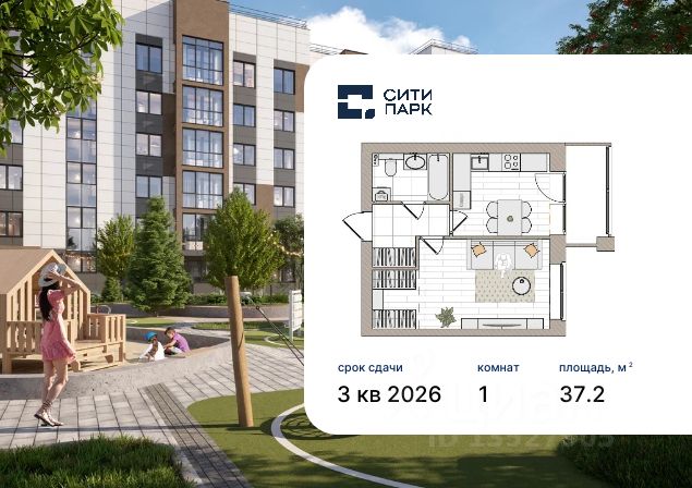 1-комнатная, 37.2 м², 37 по адресу Парковая, 1б Тип дома: Кирпич. Жилой комплекс "Сити Парк"Преимущества покупки квартиры в новостройке напрямую от застройщика КСМ: