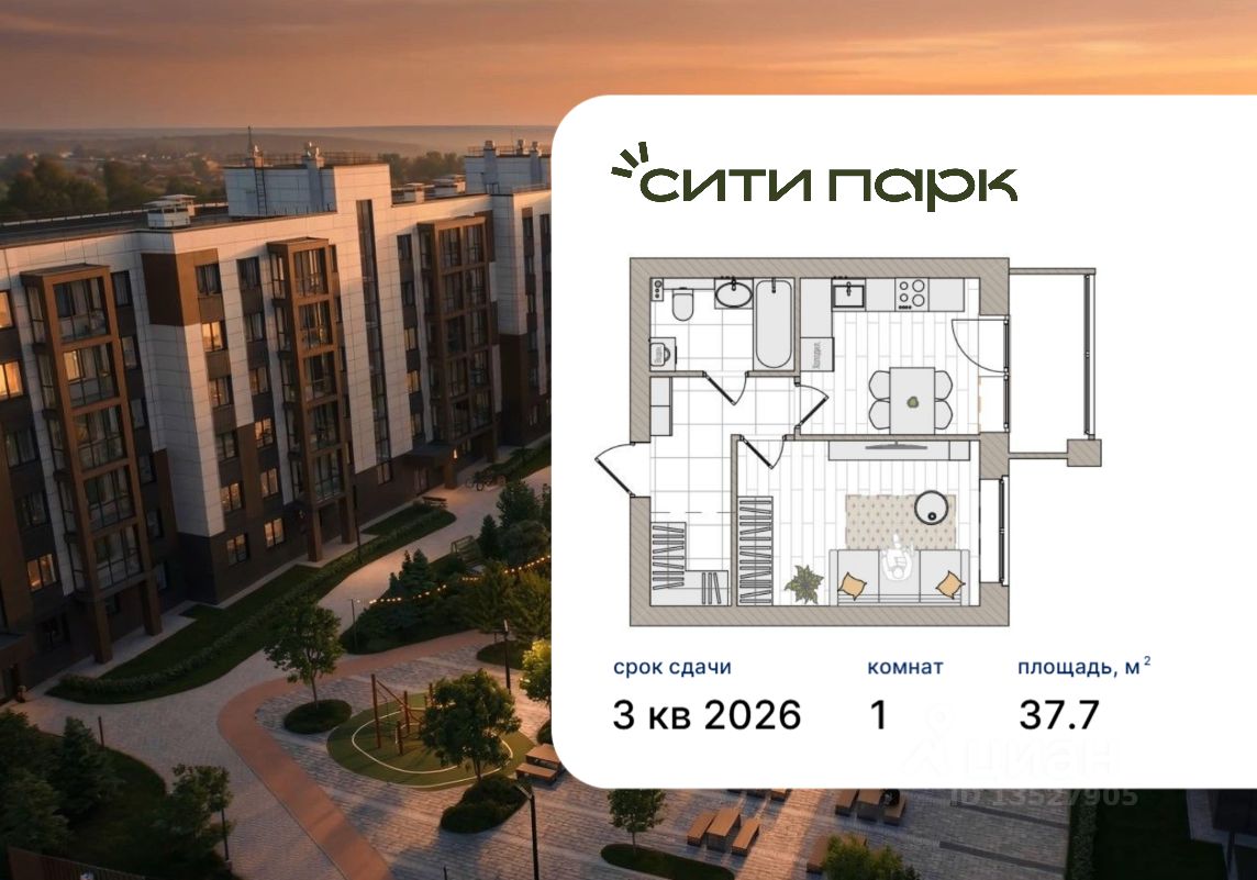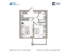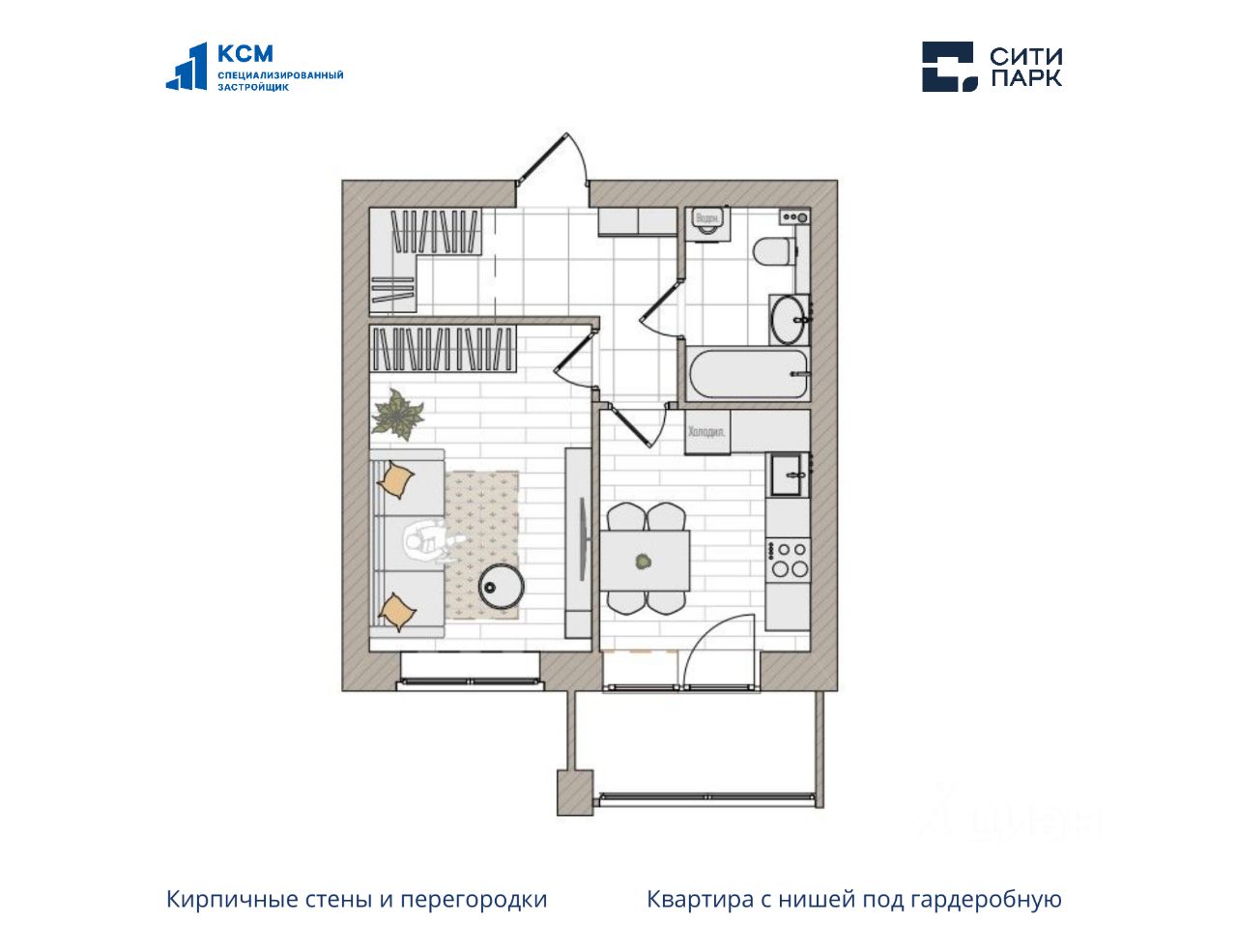 1-комнатная, 37.7 м², 77 по адресу Парковая, 1б Тип дома: Кирпич. Жилой комплекс "Сити Парк"Преимущества покупки квартиры в новостройке напрямую от застройщика КСМ: