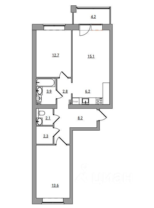 3-комнатная, 71.1 м², 79 по адресу Парковая, 1б Тип дома: Кирпич. Жилой комплекс "Сити Парк"Преимущества покупки квартиры в новостройке напрямую от застройщика КСМ: