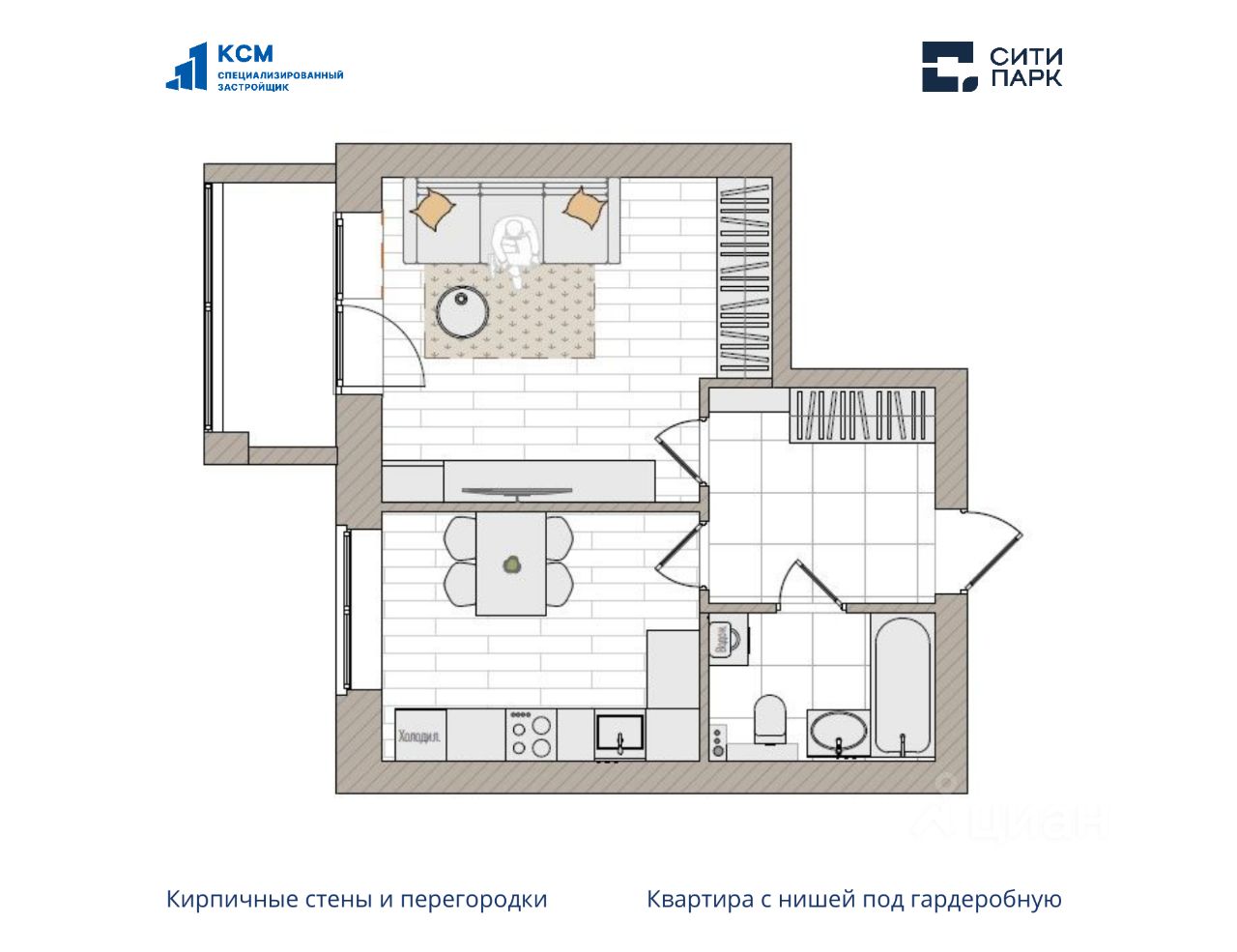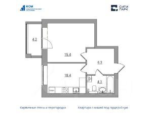 1-комнатная, 40.6 м², 120 по адресу Парковая, 1б Тип дома: Кирпич. Жилой комплекс "Сити Парк"Преимущества покупки квартиры в новостройке напрямую от застройщика КСМ:
