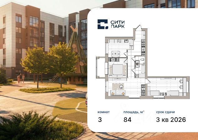 3-комнатная, 84 м², 85 по адресу Парковая, 1б Тип дома: Кирпич. Жилой комплекс "Сити Парк"Преимущества покупки квартиры в новостройке напрямую от застройщика КСМ: