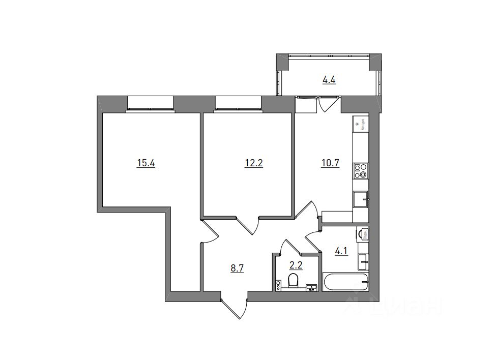 2-комнатная, 57.7 м², 42 по адресу Парковая, д.1В Тип дома: Кирпич. Жилой комплекс "Сити Парк"Преимущества покупки квартиры в новостройке напрямую от застройщика КСМ: