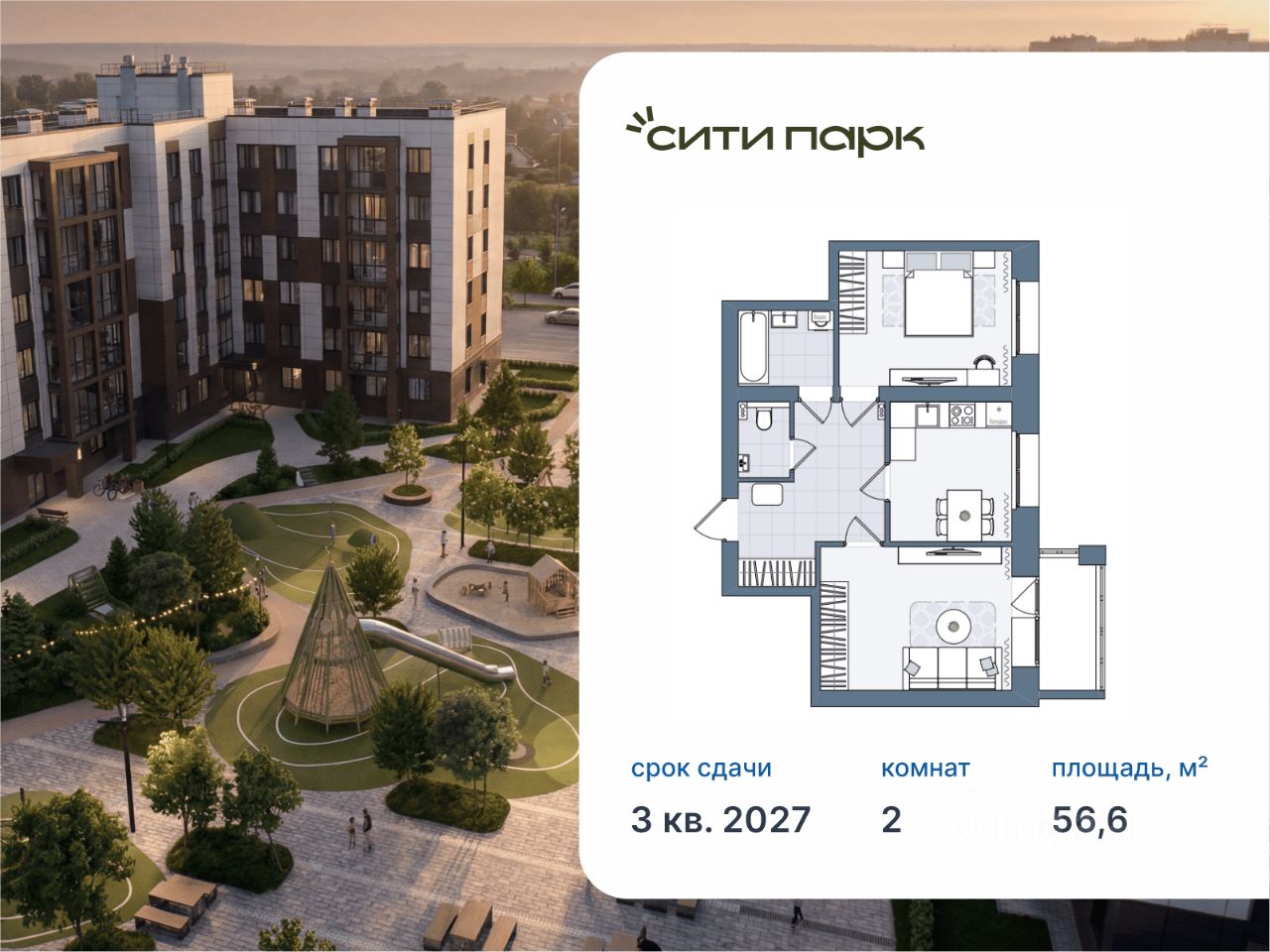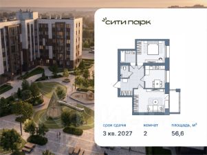 2-комнатная, 56.6 м², 127 по адресу Парковая, д.1В Тип дома: Кирпич. Жилой комплекс "Сити Парк"Преимущества покупки квартиры в новостройке напрямую от застройщика КСМ: