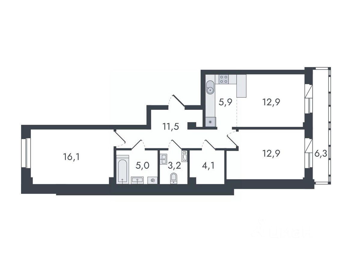 3-комнатная, 77.9 м², 38 по адресу Чистопрудненская, д. 13 Тип дома: Каркас/кирпич. Микрорайон "Чистые пруды"Преимущества покупки квартиры в новостройке напрямую от застройщика КСМ: