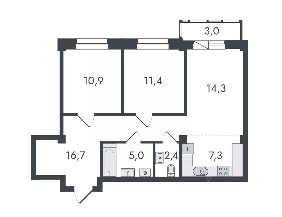 3-комнатная, 71 м², 269 по адресу Чистопрудненская, д. 13 Тип дома: Каркас/кирпич. Микрорайон "Чистые пруды"Преимущества покупки квартиры в новостройке напрямую от застройщика КСМ: