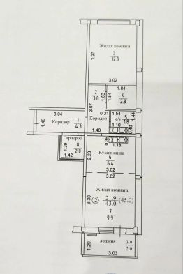 ПЛАНИРОВКА. Общая площадь квартиры 43 кв.м. + лоджия 3,9 кв.м., вместительная гардеробная 2 кв.м., раздельный сан. узел, кухня-гостиная 16,3 кв.м., комната 12 кв.м., выход на лоджию из гостиной.