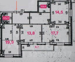 Площадь квартиры 88,4 кв.м. плюс лоджия с панорамным остеклением 6,7 м. Комнаты 17,7; 14,5 и 13,8 м. Кухня 20 кв. м., Два санузла, прихожая с местом для шкафа купе. Идеальная планировка для большой семьи.