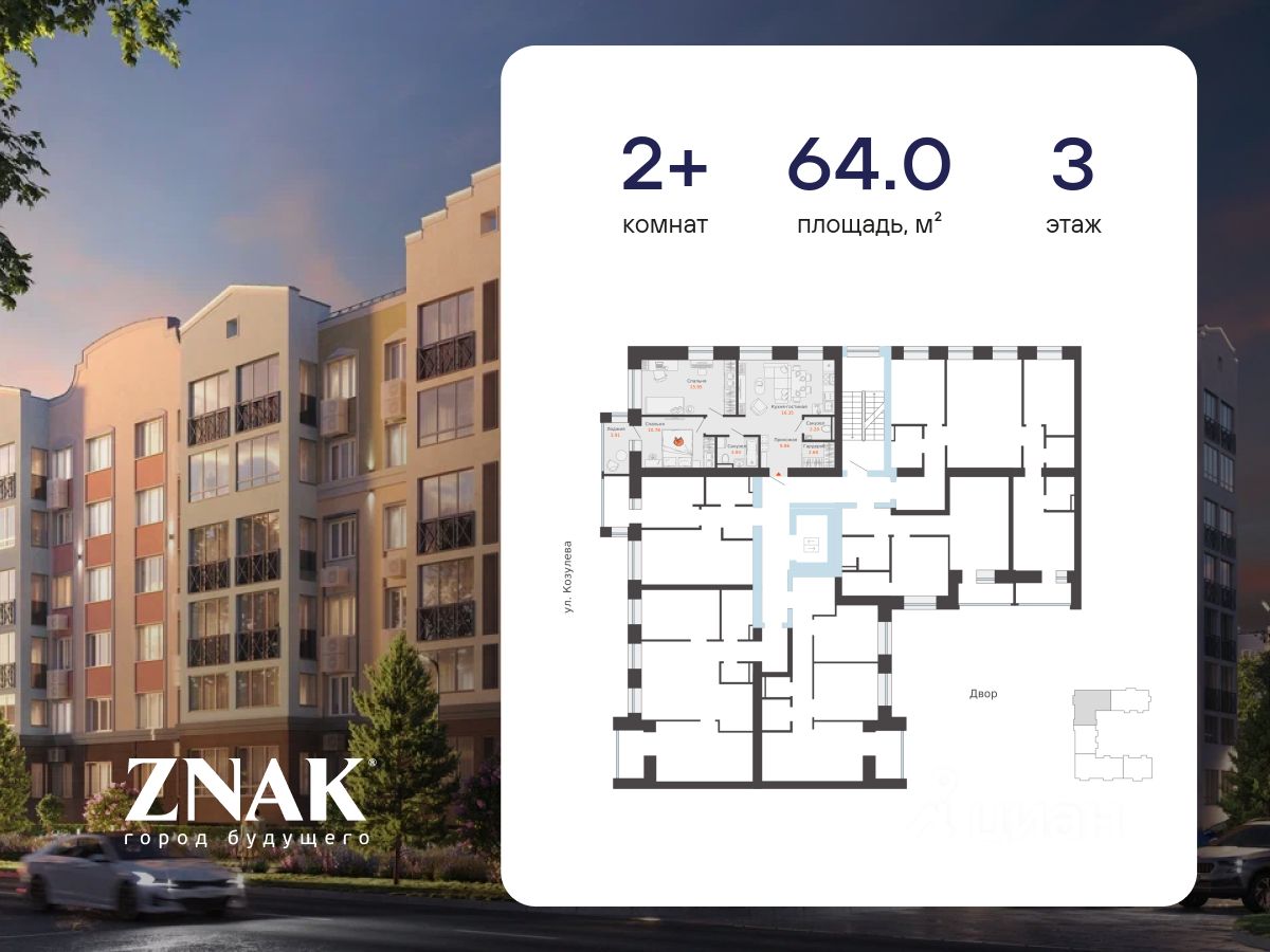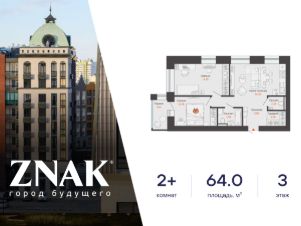 Продается 2-комнатная квартира в 3 км от Зубаревского леса, площадью 64.00 кв. м. Квартира находится в жилом комплексе комфорт-класса ZNAK от девелопера "Железно".