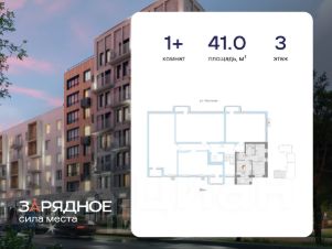 Продается 1-комнатная квартира, корпус 4/1, площадь 41.00 кв. Квартира находится в жилом комплексе комфорт-класса "Зарядное" (ГК "Железно").