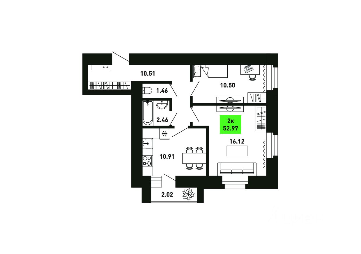 Продается 2 -комнатная квартира 147 площадью 52,97 квадратных метров на 15 этаже.Сдача дома - 4 квартал 2025