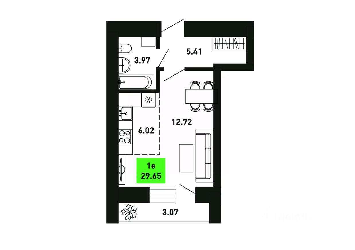 Продается 1-комнатная квартира на 5 этаже, площадью 29.65 квадратных метра. Сдача дома - 2 квартал 2027 года.