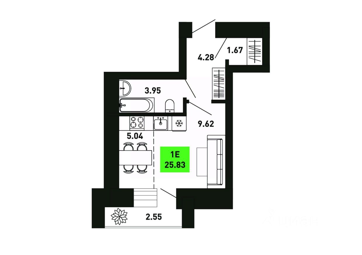 Продается 1-комнатная квартира на 3 этаже, площадью 25.83 квадратных метра. Сдача дома - 2 квартал 2027 года.