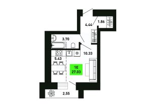 Продается 1-комнатная квартира на 14 этаже, площадью 27.03 квадратных метра. Сдача дома - 2 квартал 2027 года.