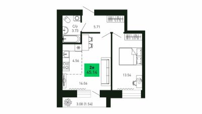 Продается 2 -комнатная квартира 149 площадью 45.14 квадратных метров на 14 этаже.Сдача дома - 2 квартал 2025 года